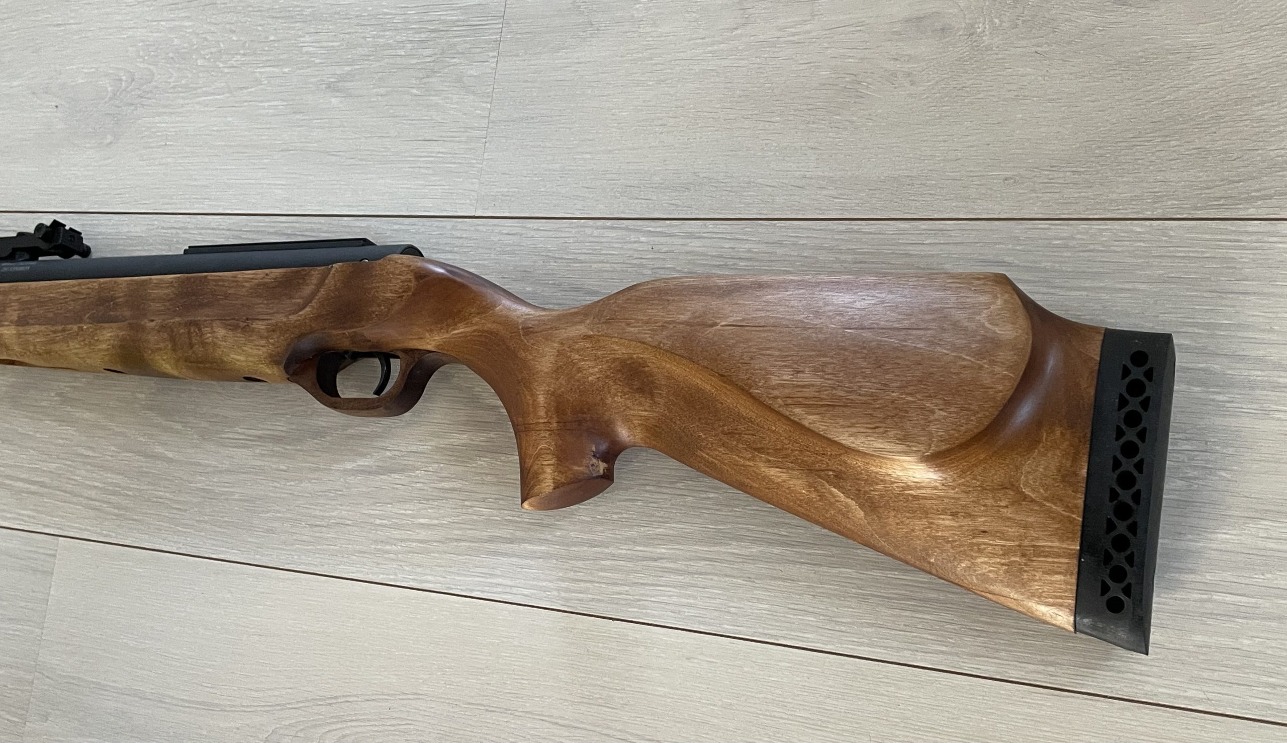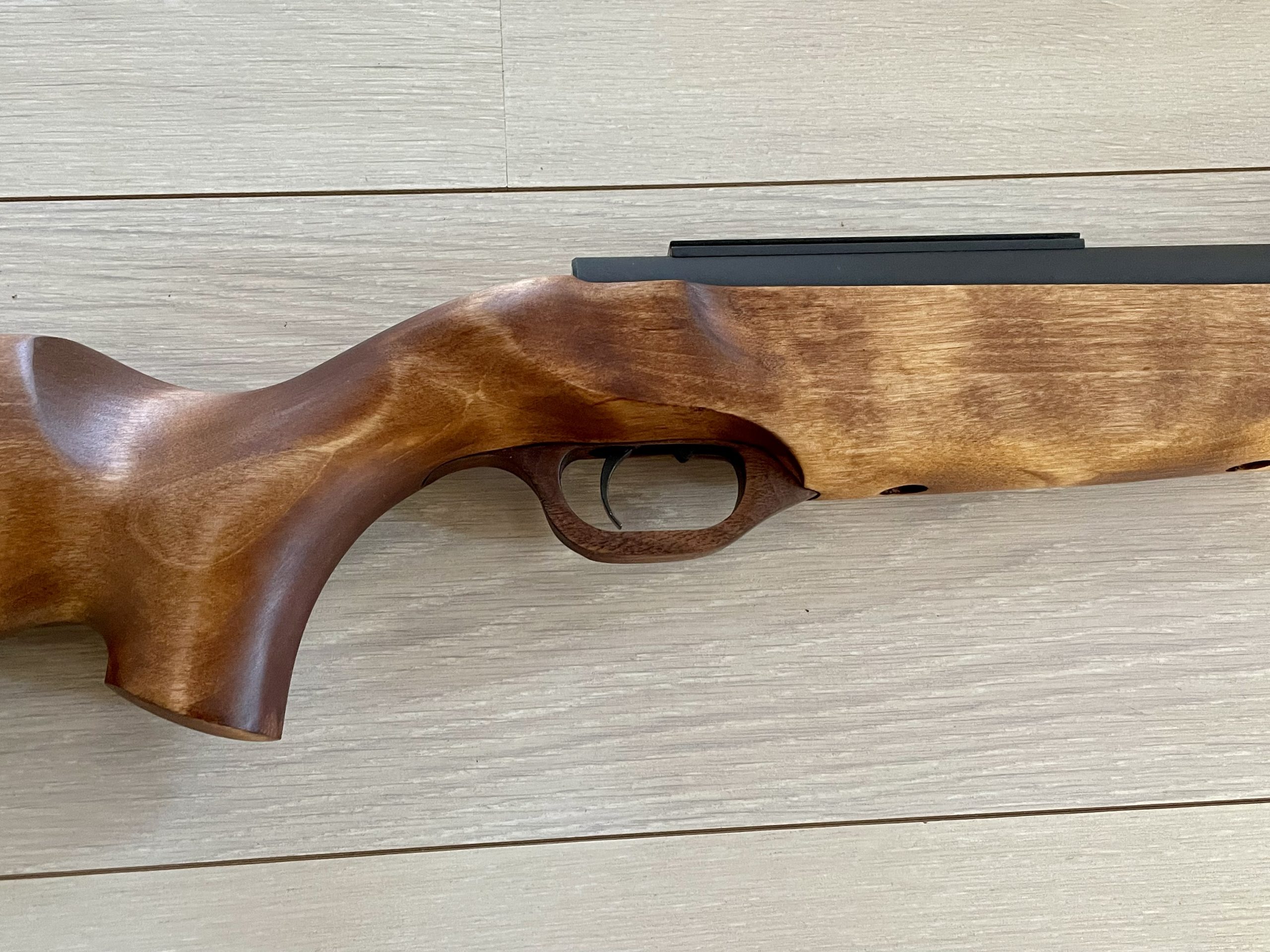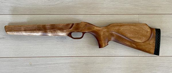 Поверхность ложа тщательно обрабатывается, древесина полируется и пропитывается льняным маслом или лаком для улучшения устойчивости и внешнего вида. Отдельный момент — данное ложе имеет удобную накладку-щёчку для удобства точной прицельной стрельбы в любом положении.