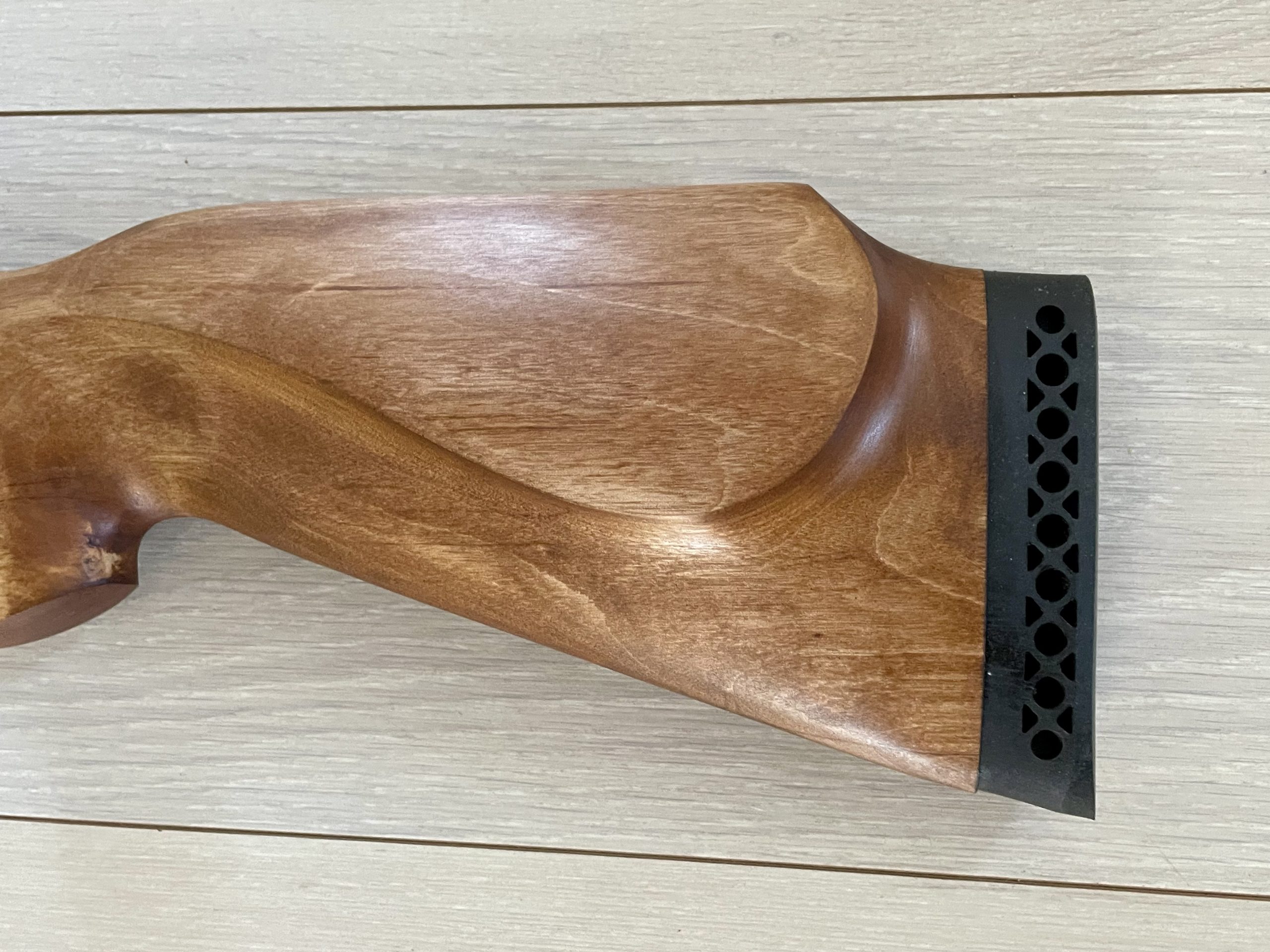 Это ложа на МР-512 сделано из березы. Затыльник приклада резиновый и очень комфортный. Лажа изготовлена для правши. На прикладе предусмотрен подщечник под правую щеку. Приклад не требует подгонки и уже готов к использованию. Подходит к МР 512-06, там крепление осуществляется 2-мя винтами.